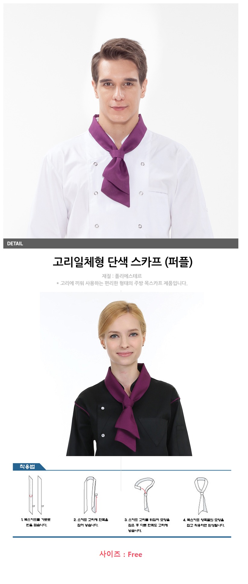 고리일체형 단색 스카프 퍼플 쉐프 조리사 요리사