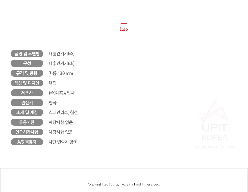 • 반품/환불조건: 도착후 1주일 이내 사용하지 않은 상태에서 가능합니다,초기제품 이상의 경우 동일한 제품으로 1:1 교환원칙, 사용후 제품이상은 A/S를 원칙으로 합니다,