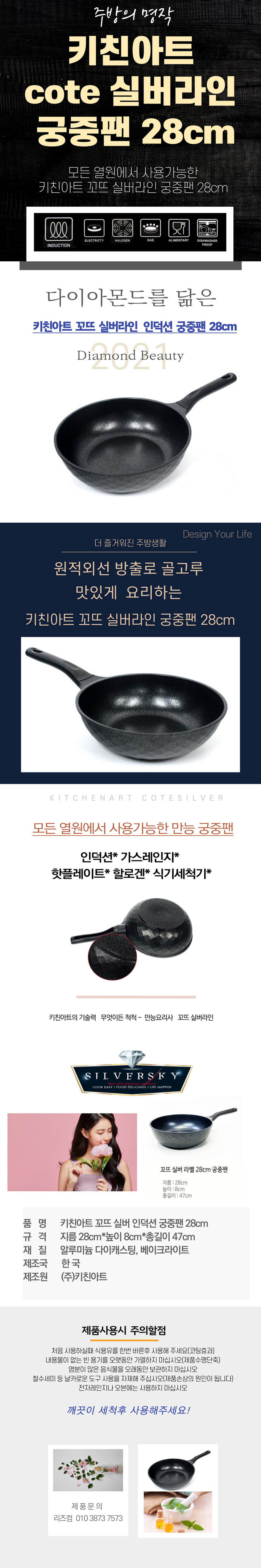 키친아트 인덕션겸용 궁중팬 28cm 꼬뜨실버 원적외선