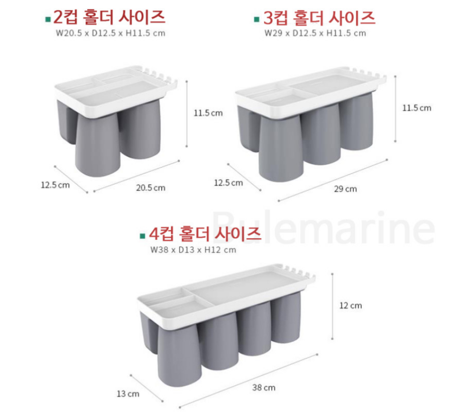 거꾸로 자석 위생 치솔컵꽂이 3인용