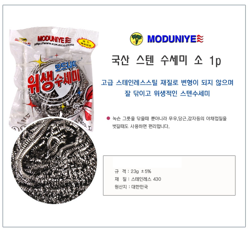 국산 스텐 수세미 소 1p 철수세미 부억수세미 스텐수