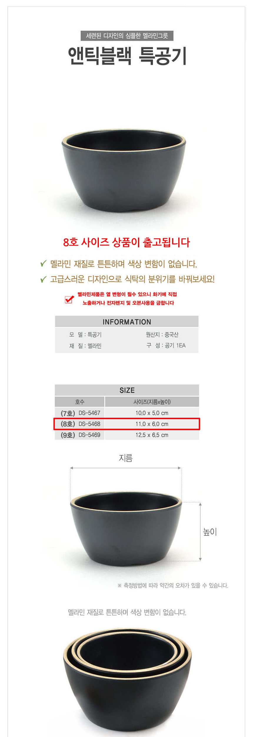 업소용 멜라민 특공기 밥그릇 앤틱블랙 8호 11cm 이미지/