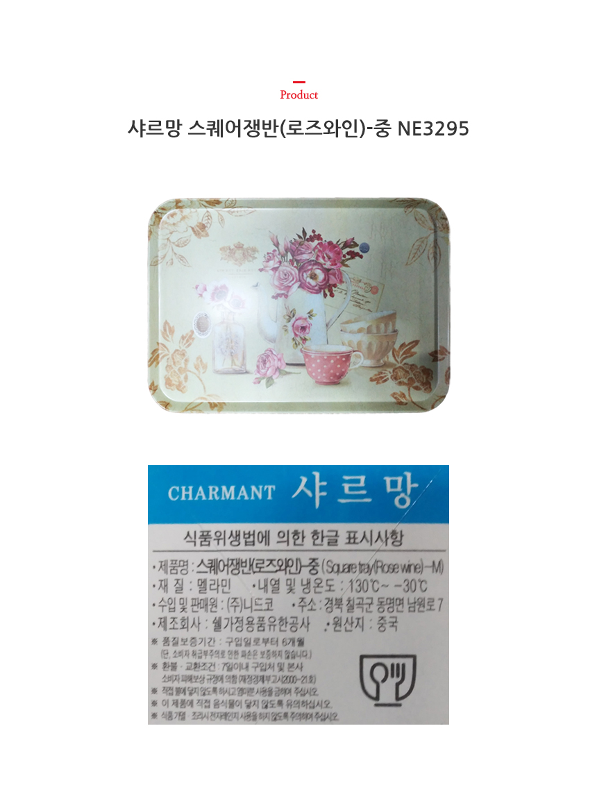 샤르망 스퀘어쟁반(로즈와인)-중 NE3295 이미지/