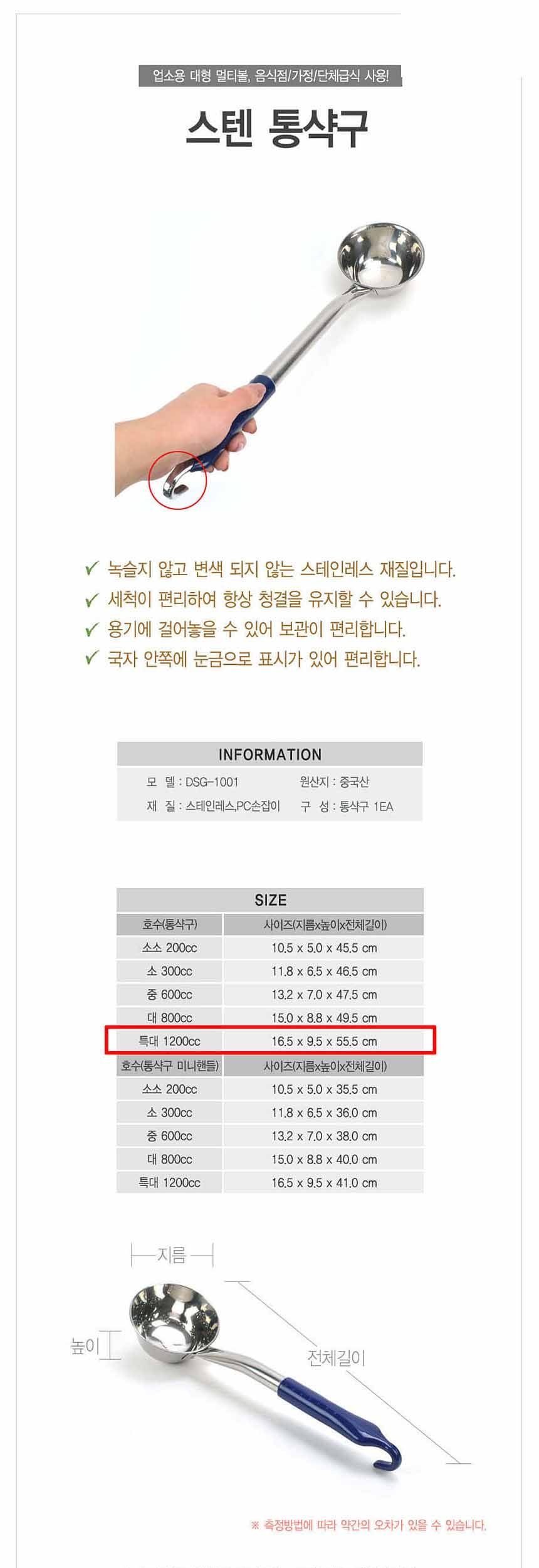 스텐 통샥구 특대형 국자 1200cc 이미지/