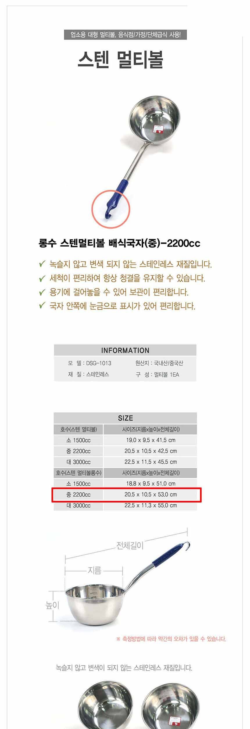 스텐 멀티볼 긴손잡이 대형국자 중형 P핸들 2200cc 이미지/