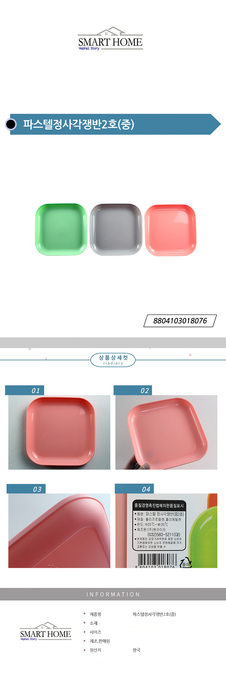 파스텔정사각쟁반2호(중)핑크 이미지/