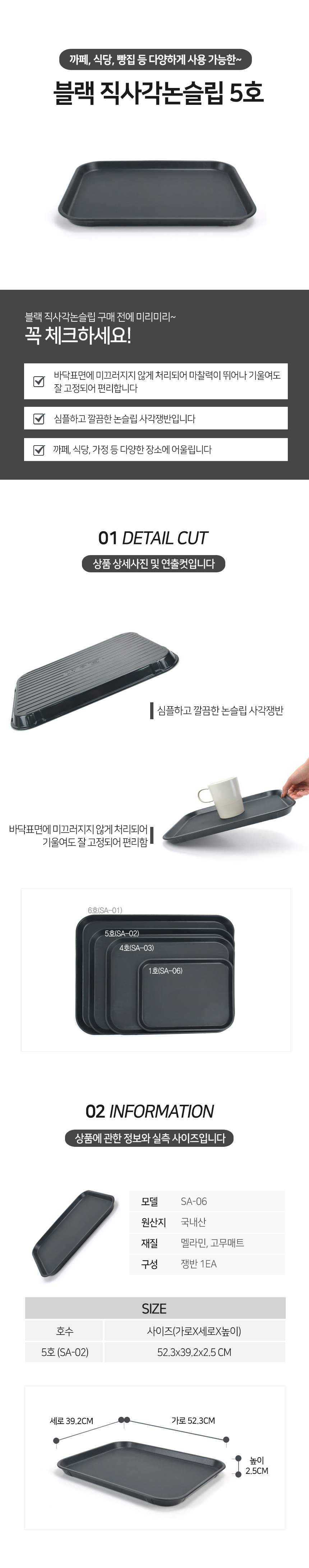 블랙 직사각 논슬립 5호 매트 사각 트레이 까페 식당