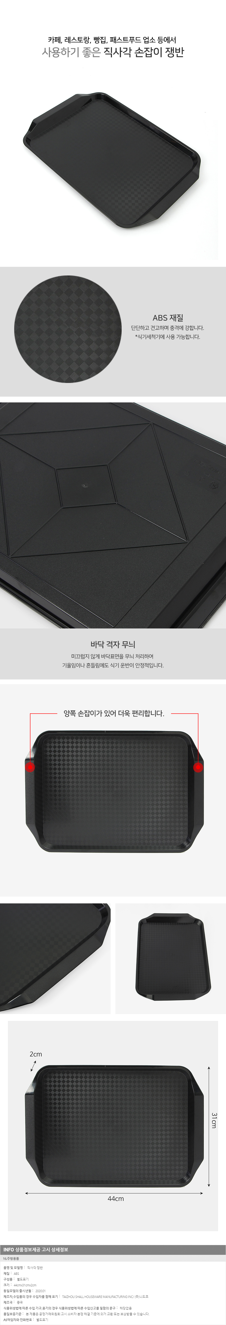 손잡이 격자무늬 직사각 쟁반(블랙) 이미지/
