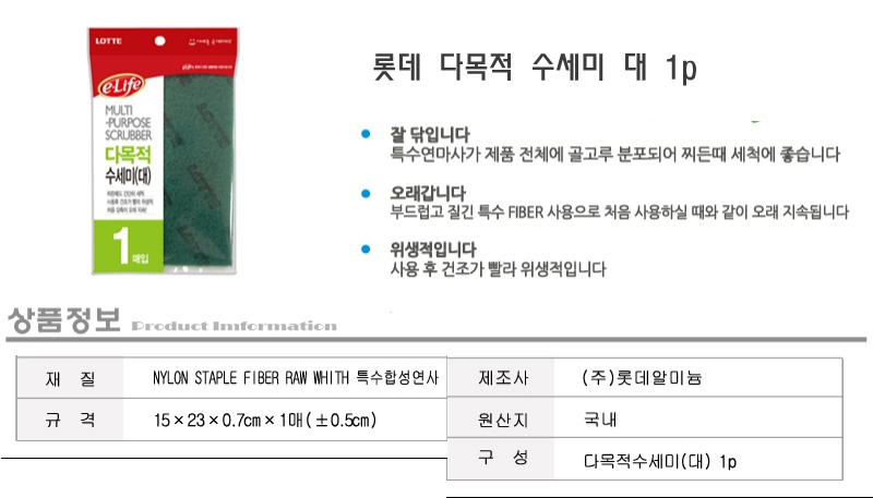 롯데 다목적 수세미 대 1p 천연수세미 부억수세미 가 이미지/