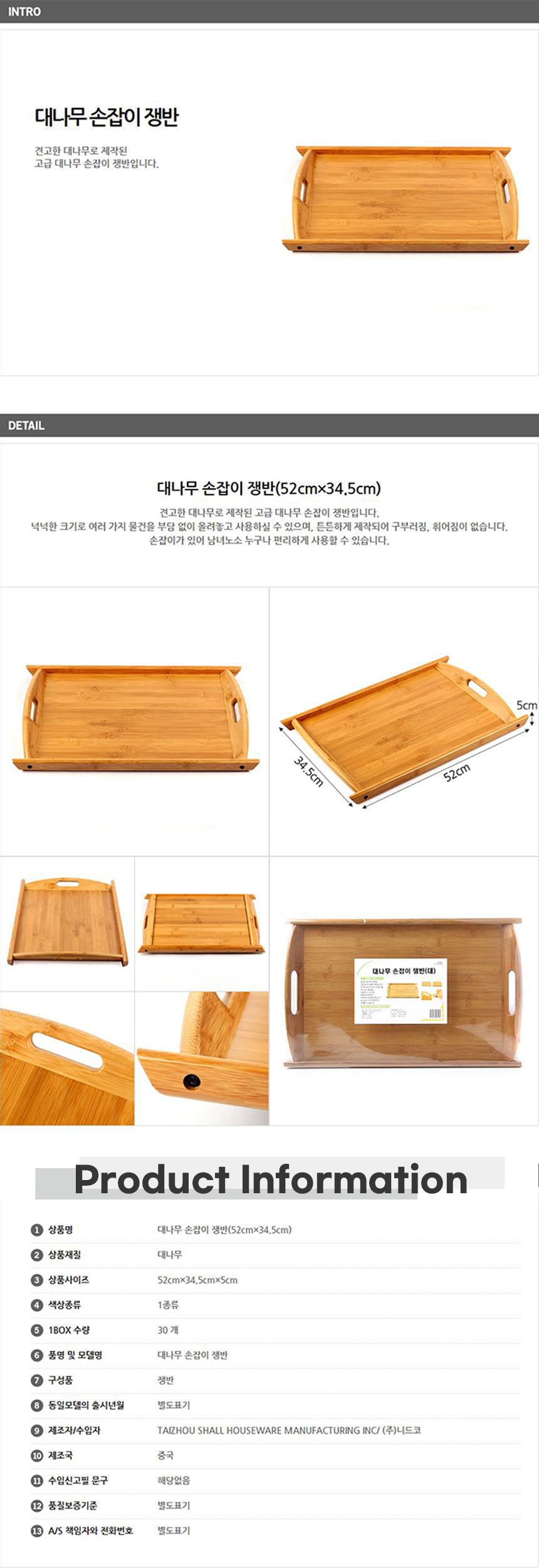 홈카페트레이 대나무 손잡이쟁반 다과상트레이