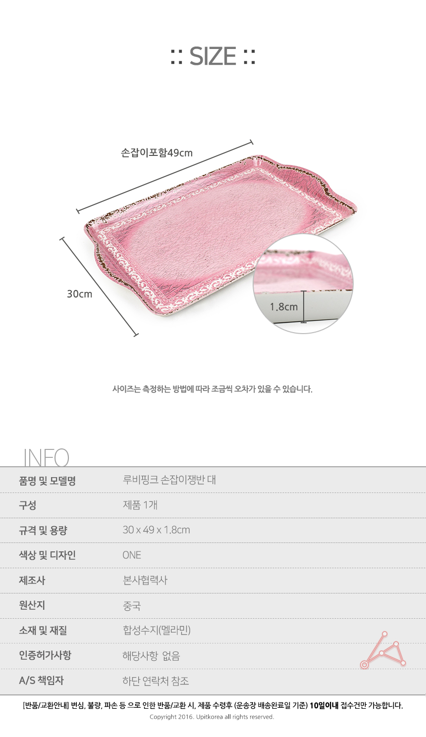 루비핑크 손잡이쟁반 대 3051 이미지/