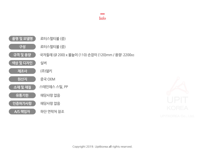 1. 품명 및 모델명 : 상세정보별도표시