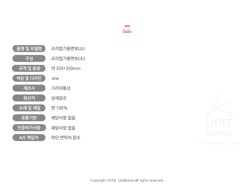 조리찜기용면보(소) (10개묶음) 0335 이미지/