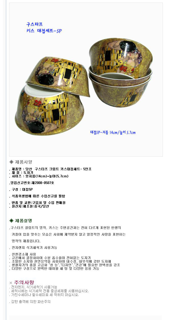 당산 구스타프 명화 대접 세트 5개 국 밥 식기 그릇 앞접시 이미지/