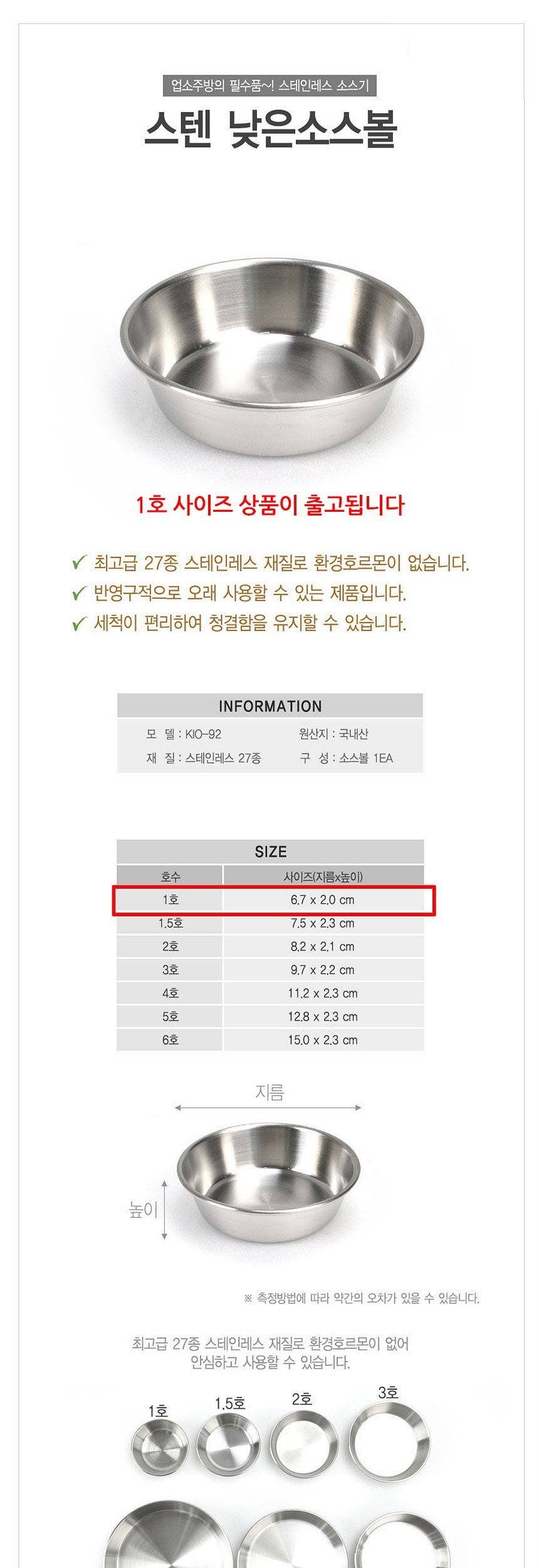 스테인레스 낮은 소스볼 종지그릇 1호 6cm 이미지/