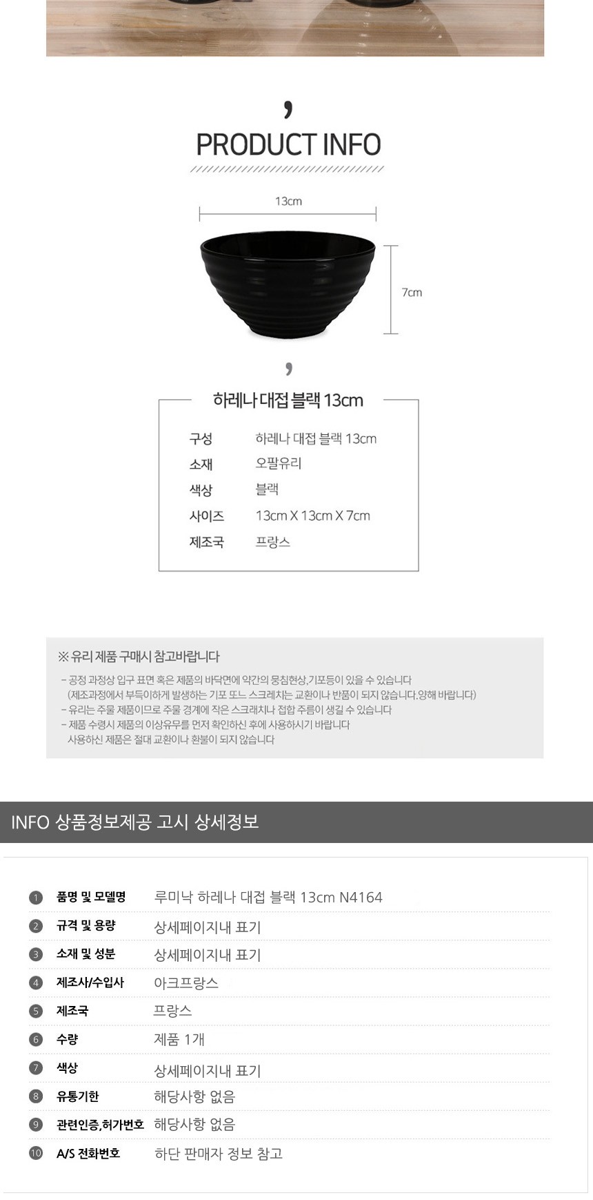 루미낙 하레나 대접 블랙 13cm N4164 이미지/