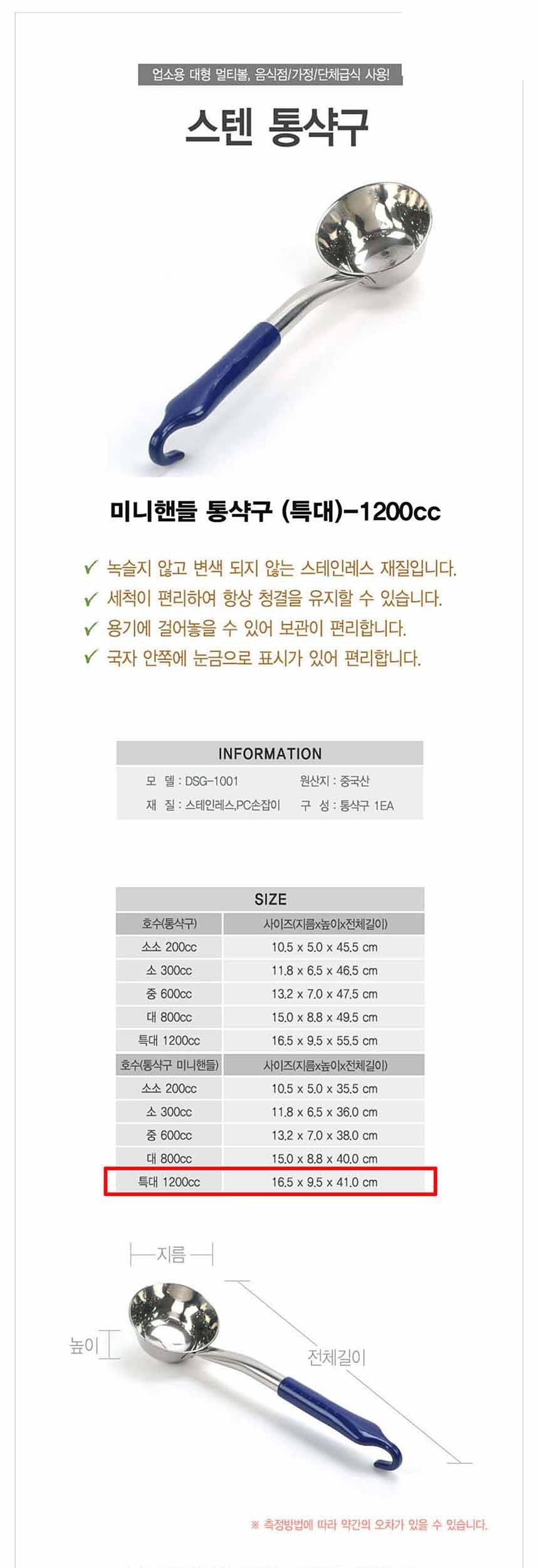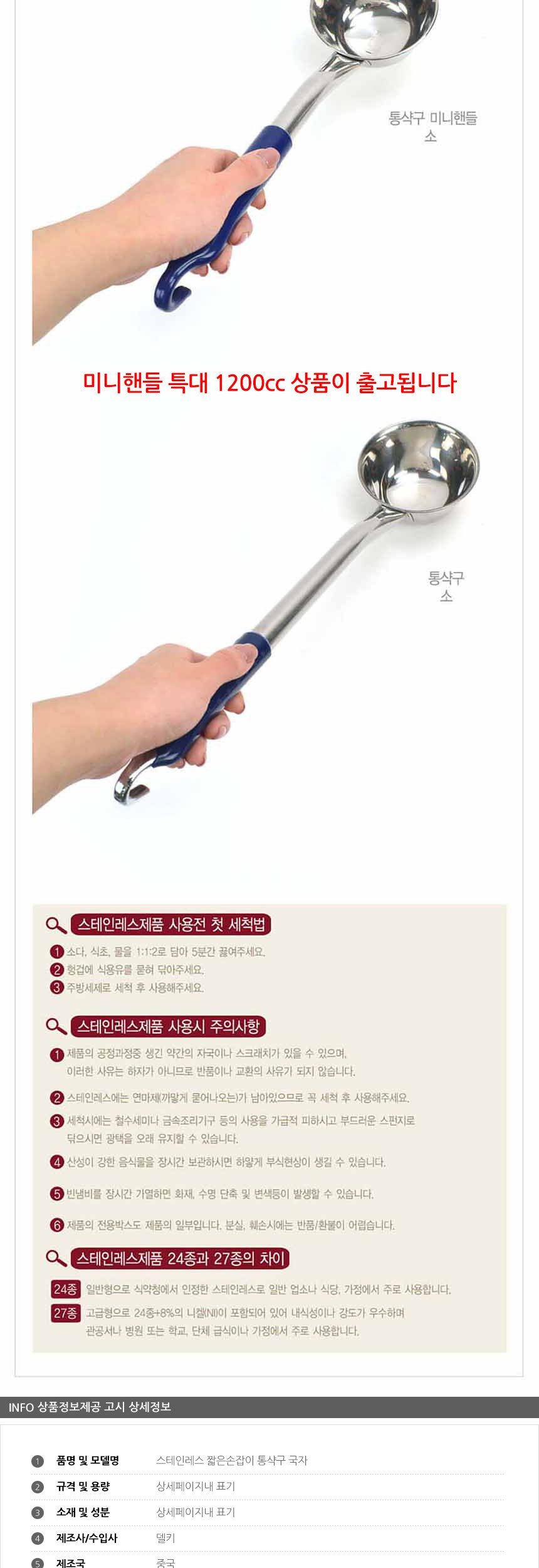 스텐 짧은손잡이 통샥구 국자 특대 P핸들 1200cc