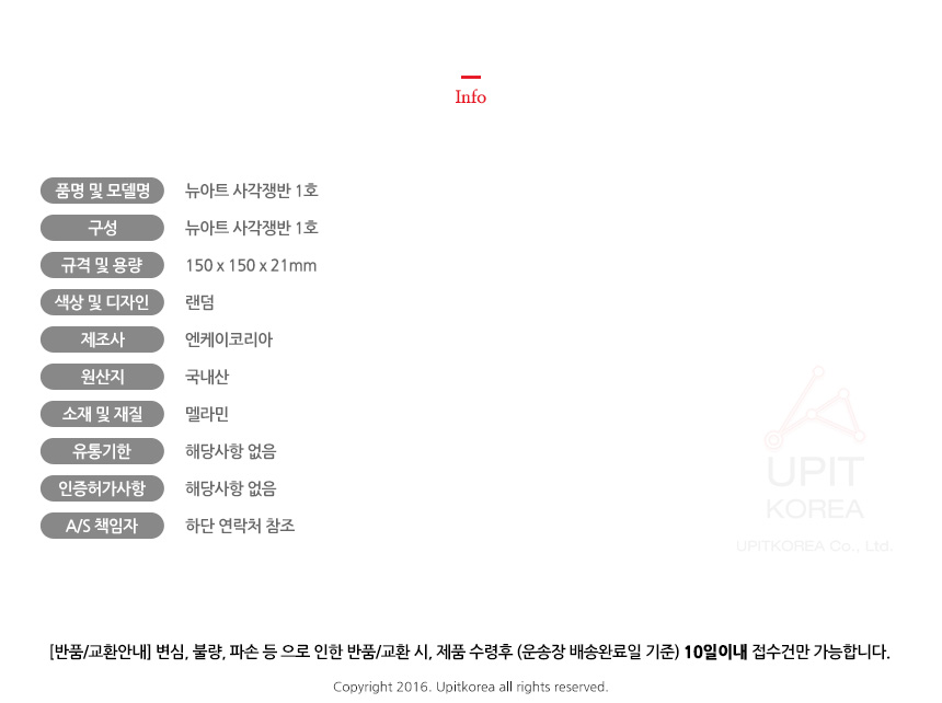 • 반품/환불조건: 도착후 1주일 이내 사용하지 않은 상태에서 가능합니다,초기제품 이상의 경우 동일한 제품으로 1:1 교환원칙, 사용후 제품이상은 A/S를 원칙으로 합니다,
