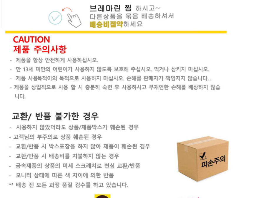 • 다른 제품과 같이 주문할 경우 따로 배송됨을 말씀드립니다.