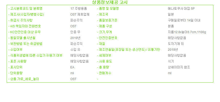 애나토쿠사 대접 5개 접시 그릇 용기 이미지/