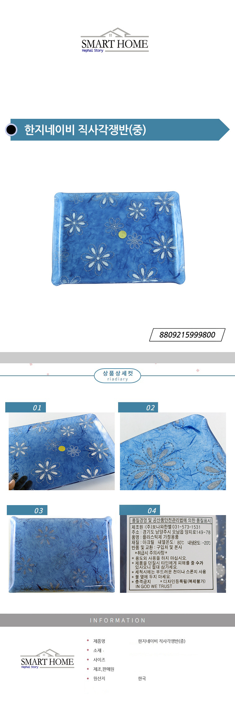 한지네이비 직사각쟁반(중) 이미지/