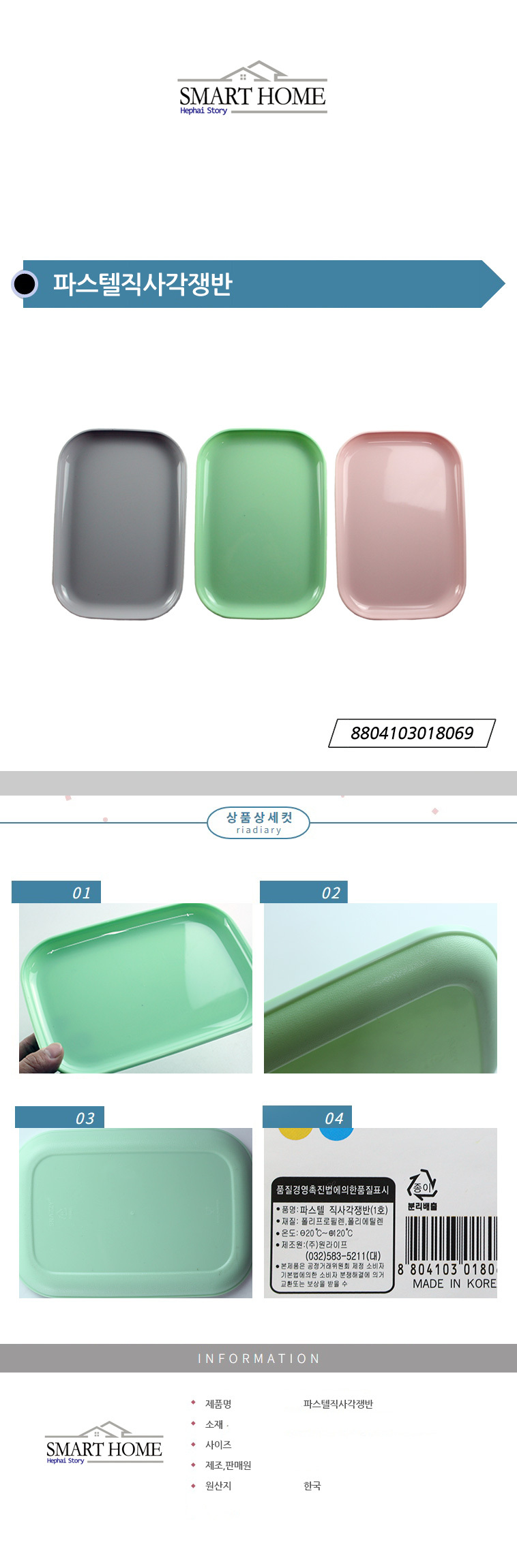 파스텔직사각쟁반 그린 이미지/