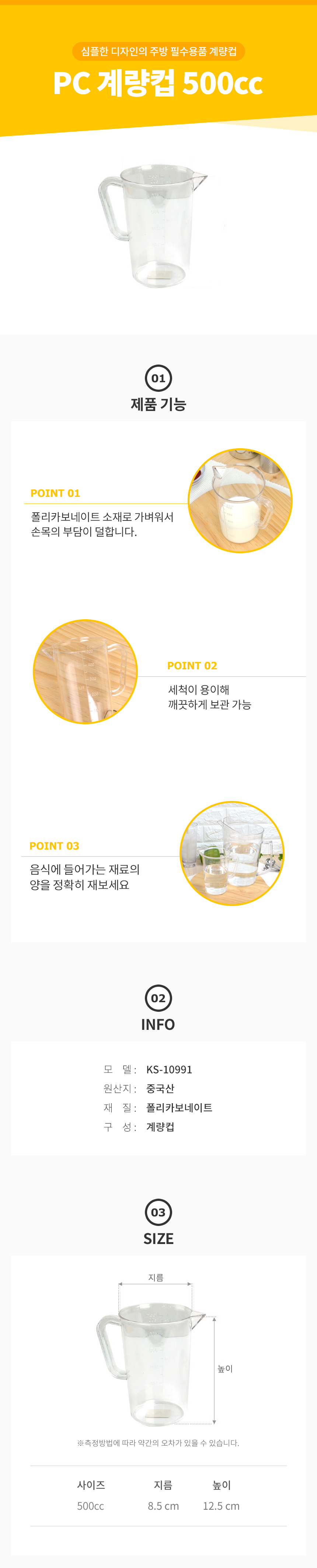 PC 계량컵 500cc 업소용 플라스틱 쿠킹 베이킹
