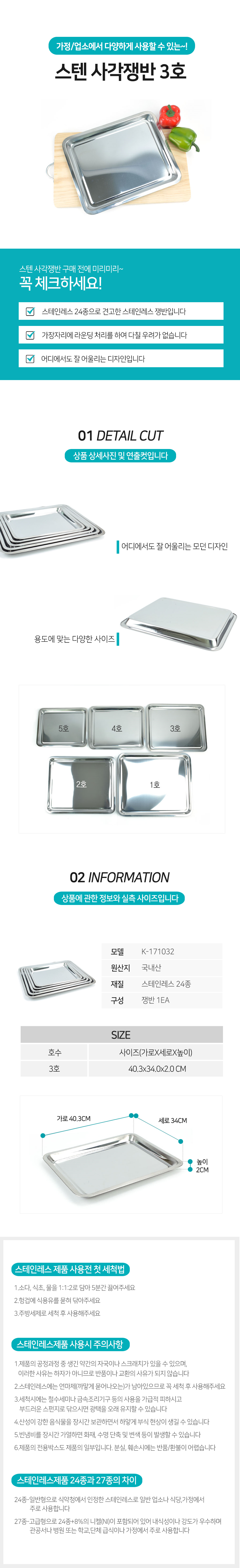 스텐 사각 쟁반 3호 주방용품 업소용 주방도구 이미지/