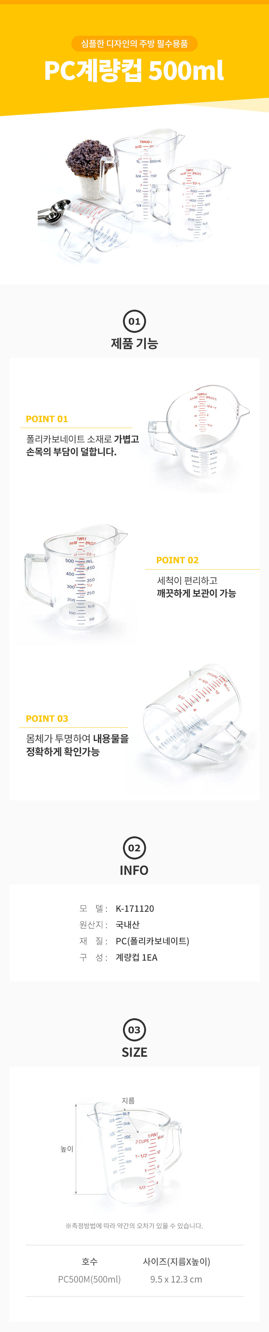 PC 계량컵 500ml 가정용 업소용 계량컵 스푼 쿠킹 이미지/