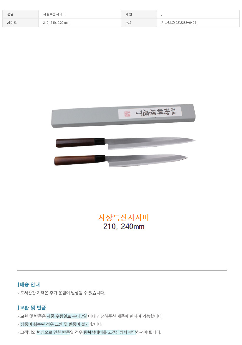 지장특선 칼 식당용 사시미 주방 회칼 2size 식칼