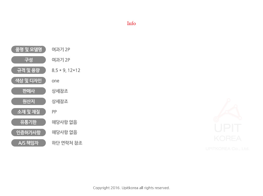 1. 품명 및 모델명 : 상세정보별도표시