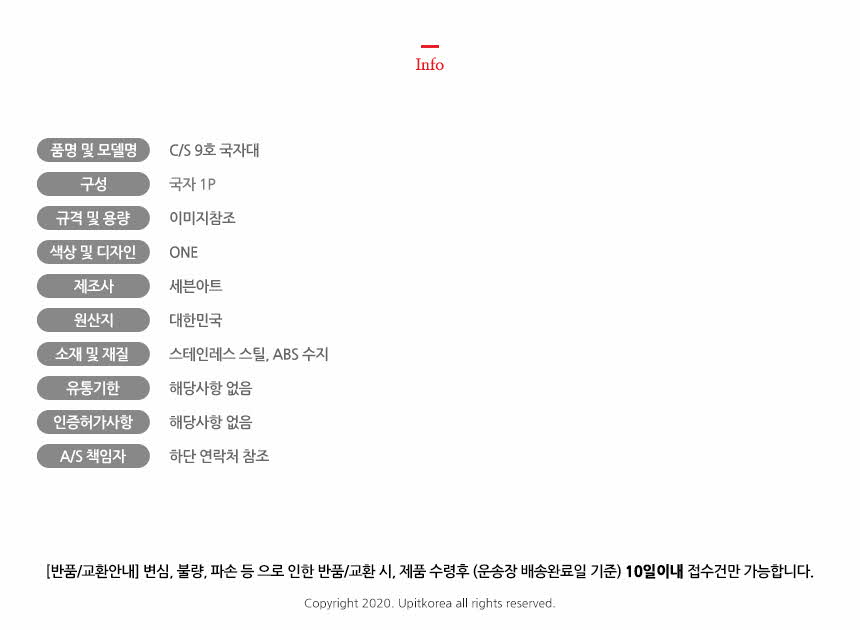 • 초기제품 이상의 경우 동일한 제품으로 1:1 교환원칙, 사용후 제품이상은 A/S를 원칙으로 합니다.