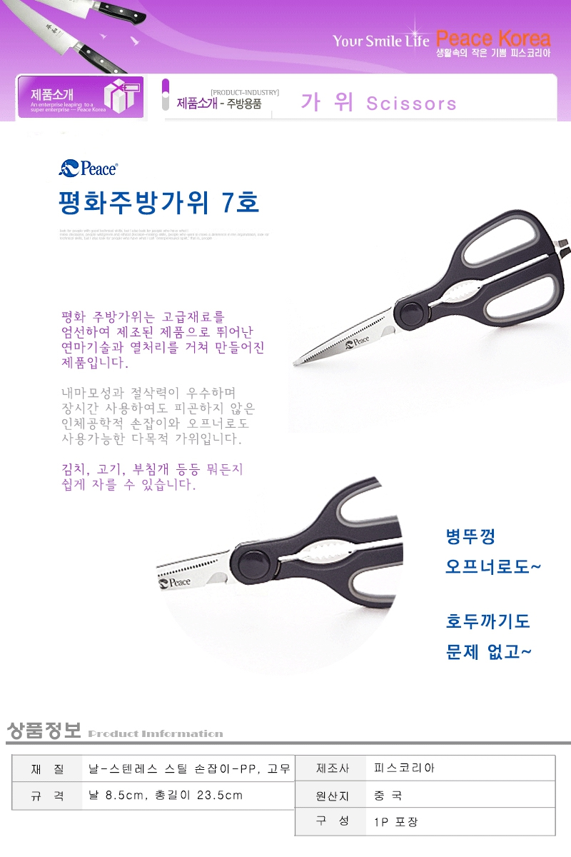 평화 주방 가위 7호 1p 부억가위 주방가위 고급주방가 이미지/