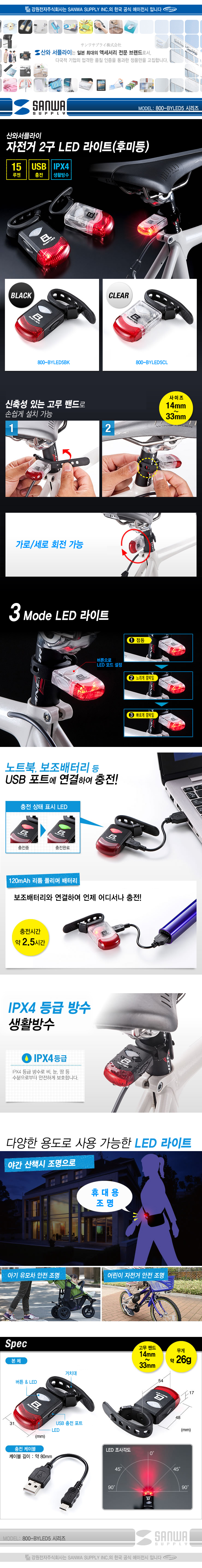 SANWA 자전거 2구 LED 라이트(후미등 클리어) 800