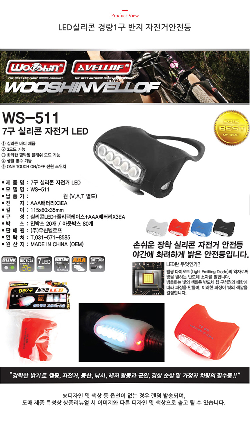 LED실리콘 경량7구 자전거안전등 0626 이미지/