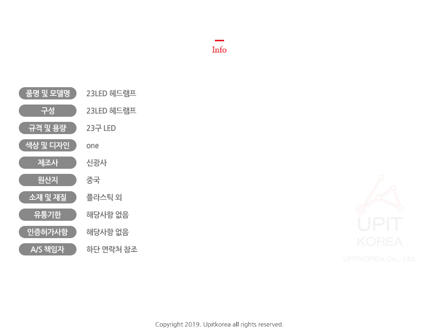 1. 품명 및 모델명 : 상세정보별도표시