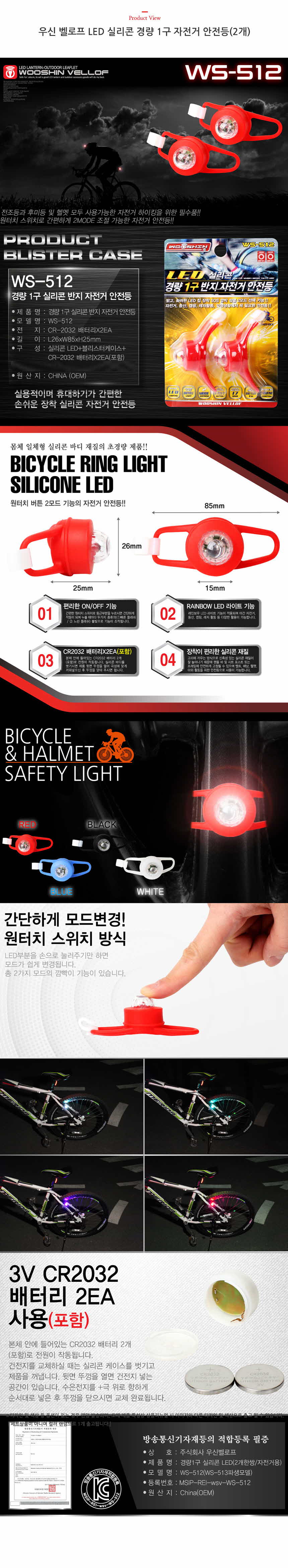 LED 실리콘 경량 1구 자전거 안전등(2개) 0619 이미지/