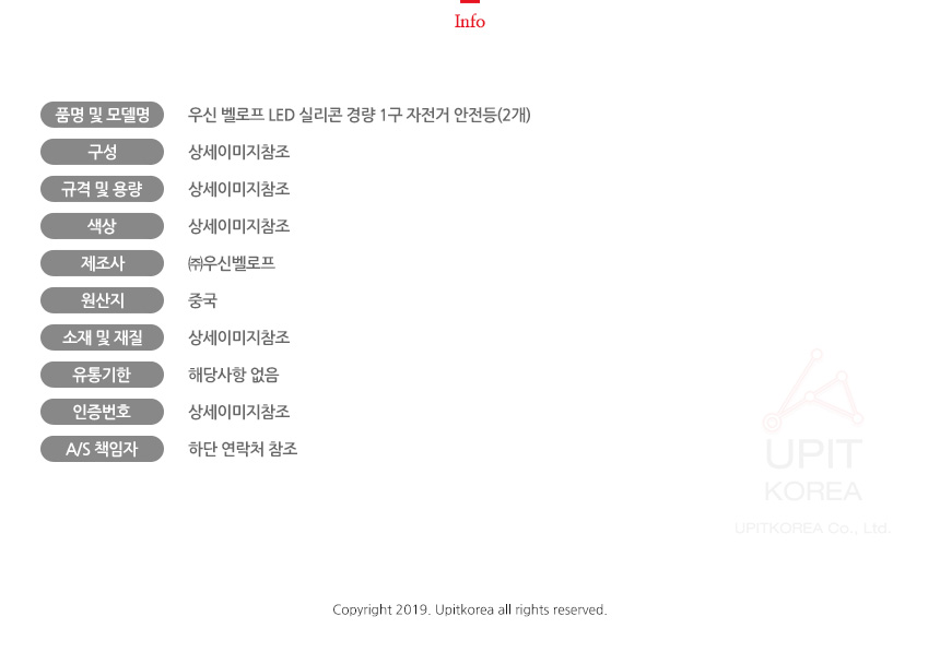 1. 품명 및 모델명 : 상세정보별도표시