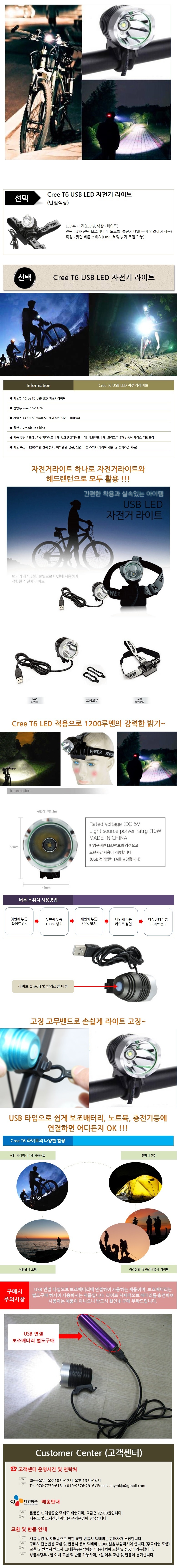 모델명 Cree T6 자전거 USB LED