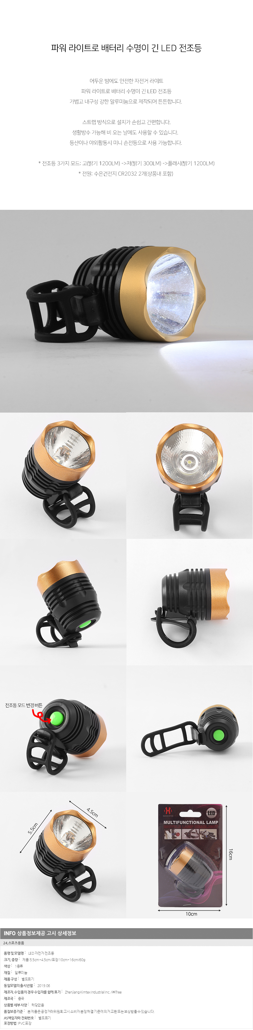 1. 품명 및 모델명 : LED 자전거 전조등(골드)