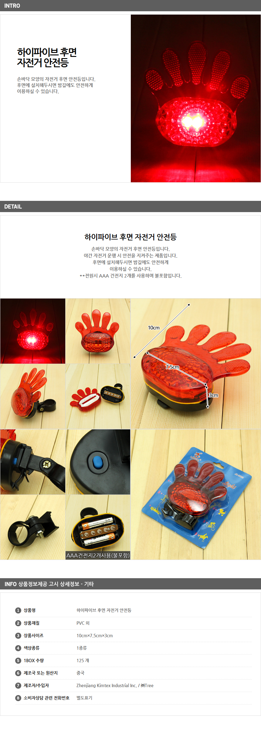 1. 품명 및 모델명 : 하이파이브 후면 자전거 안전등