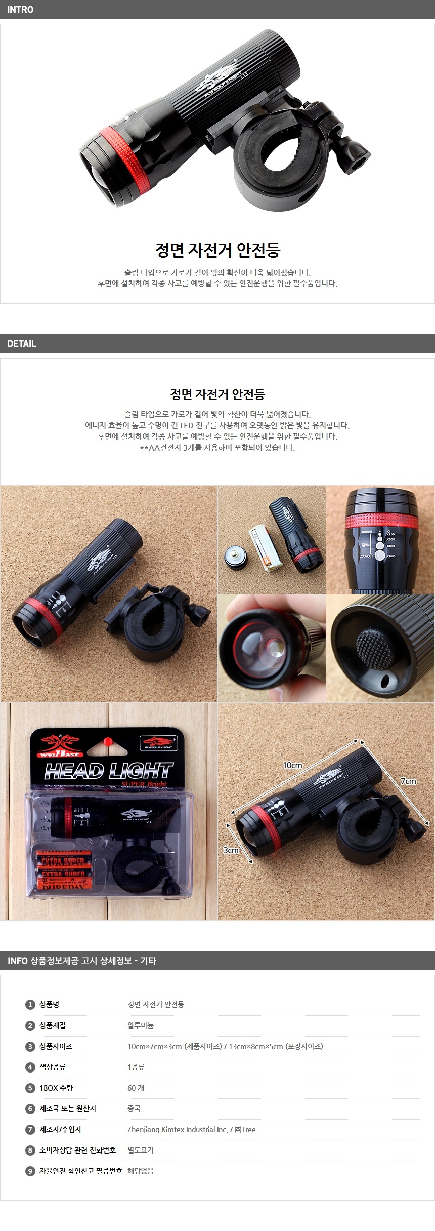 1. 품명 및 모델명 : 정면 자전거 안전등
