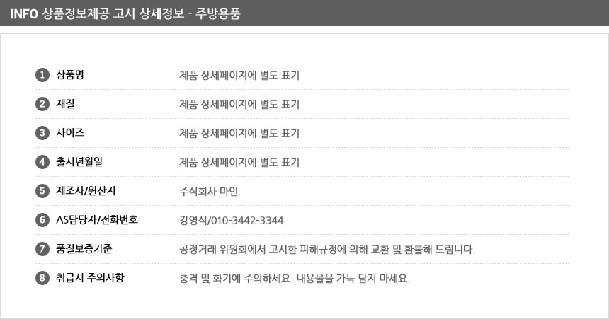 제조자 상품상세설명에 표기