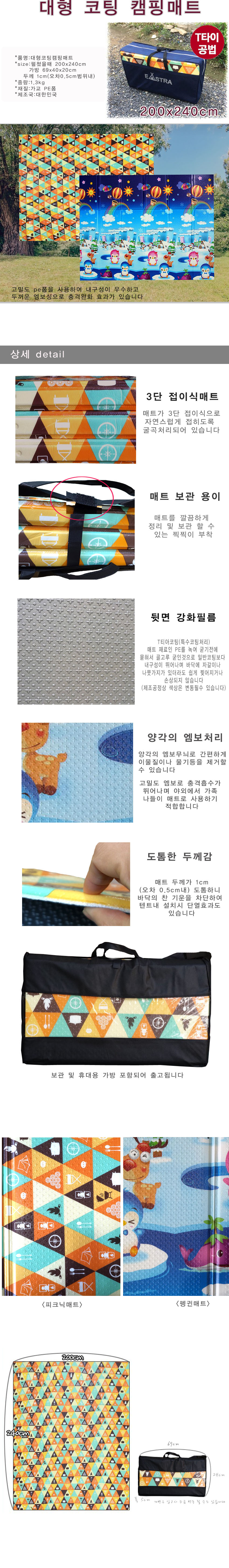 대형 접이식 아웃도어 캠핑매트 200x240cm (24개) 이미지/