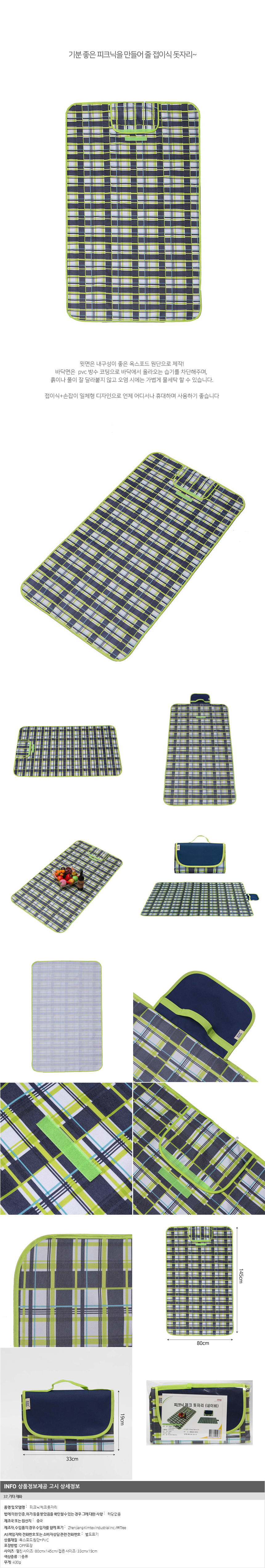 접이식 체크 방수 돗자리/캠핑(80x145cm) (네이비) 이미지/