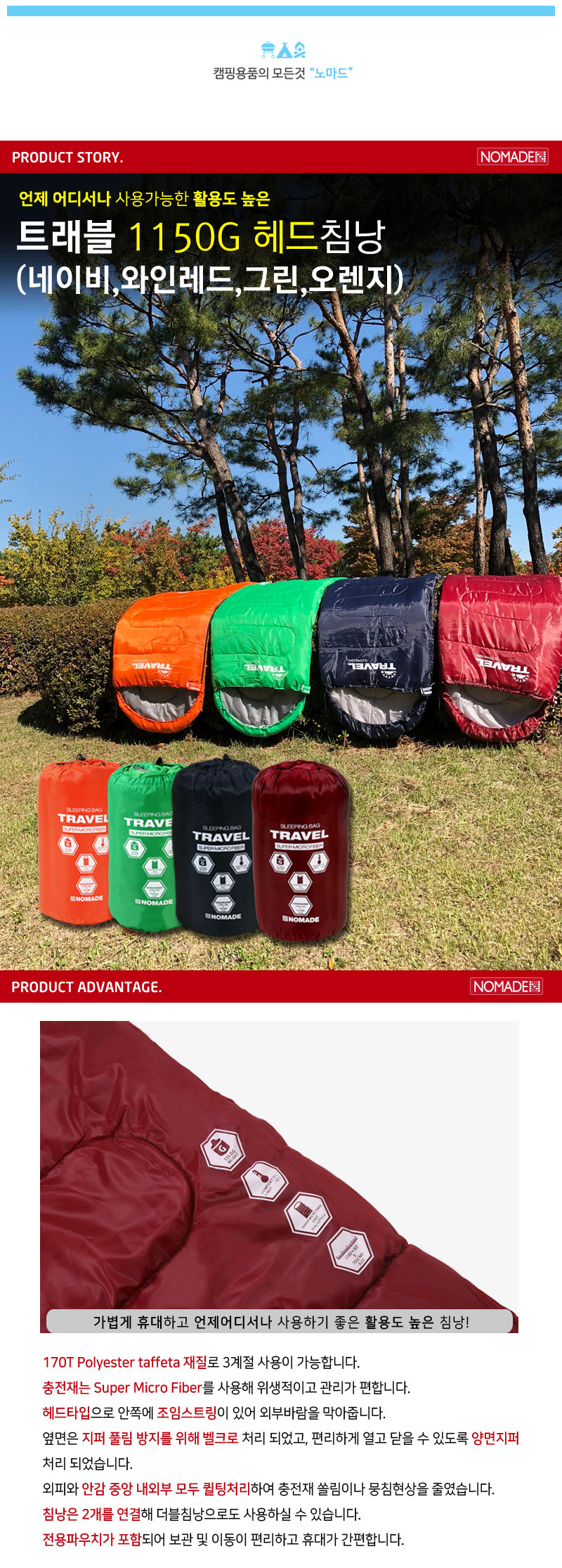 트레블 1150G 헤드 침낭 이미지/