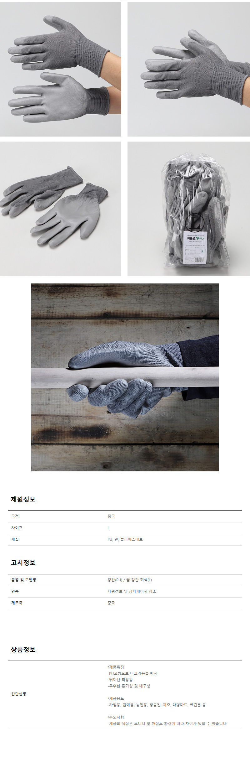 d09 장갑(PU)비츠온/PALM장갑회색(L)/101715/10개 이미지/