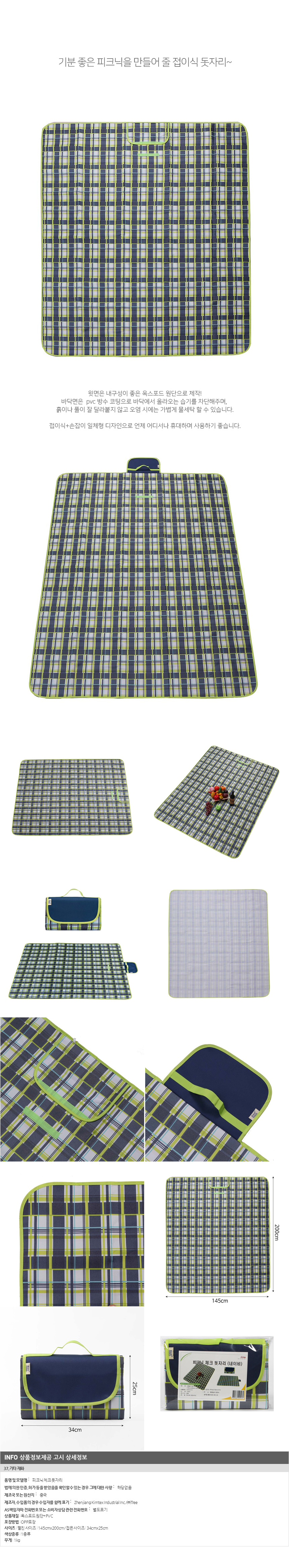 피크닉 체크 돗자리(145x200cm) (네이비) 이미지/