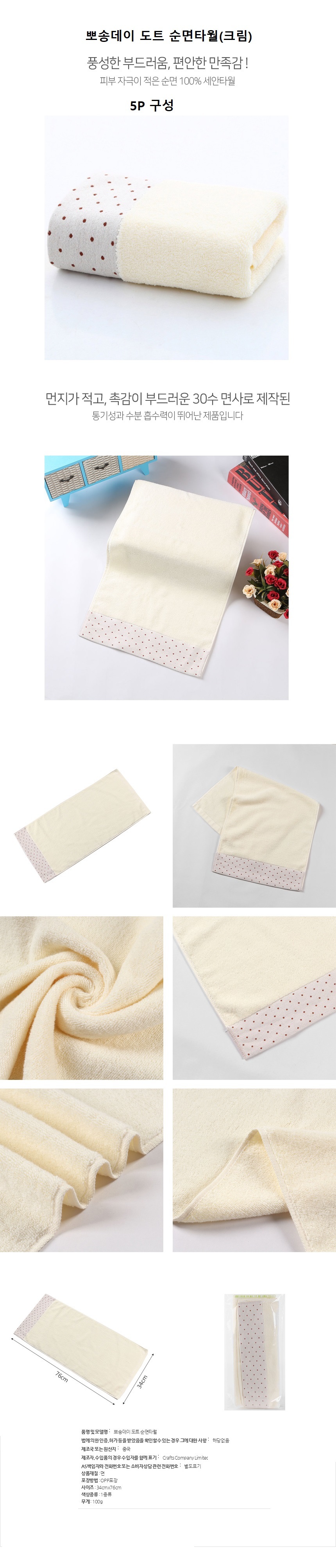 뽀송뽀송한 도트 30수 순면타월5P