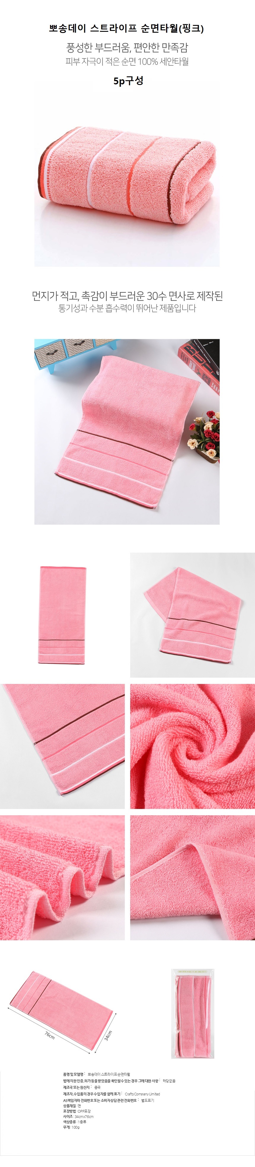 뽀송뽀송한 핑크스트라이프 30수 순면타월5P